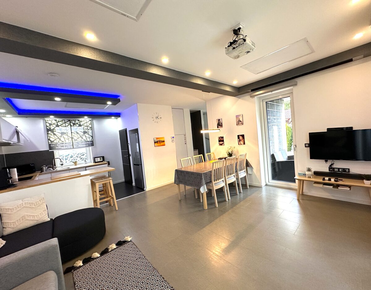- Kényelmes étkező 6 fő részére, plusz reggelizőpult.